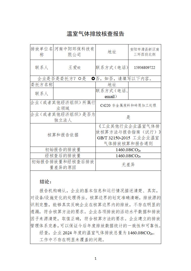 >河南中陽環保溫室氣體核查報告